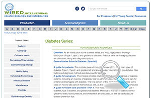 WiRED International offers almost 20 different education modules in its series on diabetes. These include an overview (also in Spanish), courses for different target audiences, guides to eating, and segments on how diabetes affects the heart, eyes, teeth and gums, skin and feet.