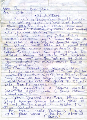 Education was a factor in Ramsey’s life early on. When he became an orphan, a woman took him in with her family only to abuse him when he got better marks at school than her children did. She told Ramsey that it would be better if he had never been born. When she stopped feeding him, he left to look for shelter and food but also for an education. A man took care of him for a while, but did not let him fulfill his dream of going to school.