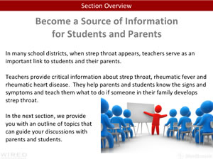 Teachers, who see children every day, play a critical part in the surveillance process for early lifesaving detection of strep throat. Parents and students also need to understand the potential dangers of a sore throat. (Not all sore throats are strep, but due to the serious risk factors they should be checked out by a doctor.)