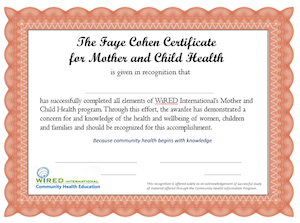 The World Health Organization reports that the majority of deaths suffered around the world by mothers in pregnancy and childbirth and by children under age five are preventable. WiRED created the M&CH certificate to encourage people to study material designed to safeguard the health of mothers and children in their communities.