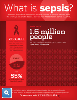 eptember is Sepsis Awareness Month. Sepsis is a complication of infection that can lead to tissue damage, organ failure and death. The condition constitutes a global healthcare problem and is the primary cause of death from infection, especially in underserved countries, despite advances in modern medicine such as vaccines, antibiotics and intensive care.