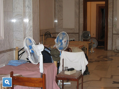 To a newcomer, Saddam’s palace, grand and gaudy, was as disorganized as Delta Tau Chi, the Animal House fraternity. It was the Wild West. Old homesteaders had staked out their 160 acres; here, we staked out a room and a cot. There were no desk clerks handing out keys, asking how they could make your stay more enjoyable. You wandered through the palace, found a room with an unoccupied cot, put your stuff on the cot and declared it your personal 21 square feet.