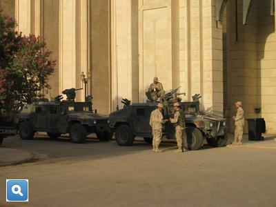 It took the better part of a day to drive from Kuwait to Baghdad, a half hour to get through security at the Green Zone, then over to the palace, also known as the Republican Palace, one of Saddam’s many palaces scattered around the country. Word had it that every evening the staff at each palace was instructed to prepare an elaborate meal in the event he would choose to visit. Saddam was security obsessed and rarely announced his schedule. Heads would roll if he showed up, and a feast wasn’t ready and waiting. So staff prepared everywhere, in case he dropped in anywhere. When we dropped in, there wasn’t much of a feast waiting, but the military did a pretty good job of feeding the hundreds of people who arrived every day.