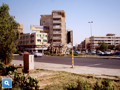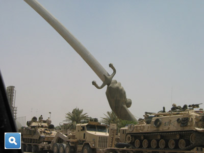 For better or worse, we could stroll the grounds unhampered by restrictions, so Jim and I explored the ruins of the North Palace; we examined the Lion of Babylon and took photos of the ancient stamped bricks of Nebuchadnezzar. At one point, while standing in a stone matrix of the ruins, Jim asked me to take his picture. Teasing him, I asked for one good reason why I would want to take his picture and risk ruining my camera. Provoked, he shouted an expletive, which I shouted back, then took the photo. We finished the tour, the meetings and the long day in Babylon and headed back to Baghdad in a slow convoy, arriving at the palace just before dark.