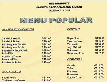 cordovas, you can order a cappuchino. A hamburger costs less than a U.S. dollar, and a local beer about the equivalent of